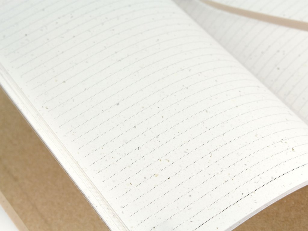 Desky jsou vyrobeny z recyklovaných papírů s podílem kakaových slupek, což dodává notesu přírodní vzhled a minimalizuje jeho ekologický dopad díky PVC free potahu. Stránky z recyklovaného papíru s podílem vláken cukrové řepy jsou skvělým místem pro vaše myšlenky a plány. Linkované stránky zajišťují přehlednost a uspořádanost poznámek, zatímco předsádky a kapsa na dokumenty z recyklovaného papíru poskytují praktické ukládání vašich materiálů.