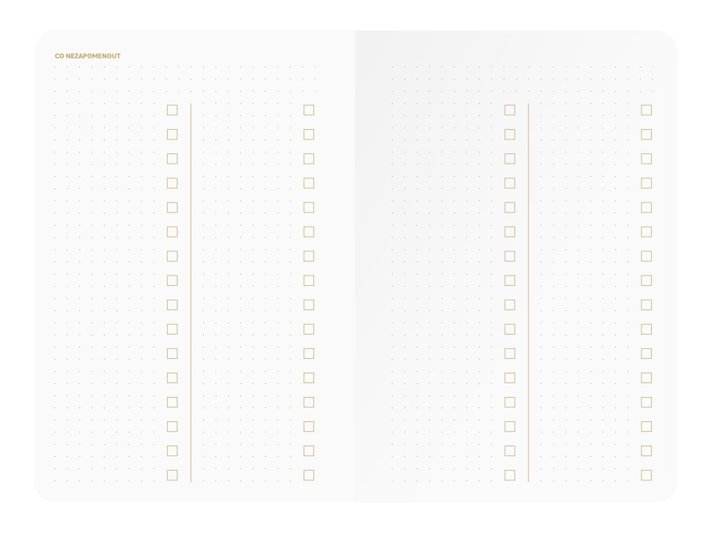Horizontální kalendárium bez pevně stanovených časových údajů vám poskytuje flexibilitu při plánování. Rozvrh dne si můžete přizpůsobit podle vlastních představ a organizovat den kreativně. Každý týden má dostatečný prostor pro poznámky, myšlenky a jakékoli zápisky. Každý týden zahrnuje také To-Do list, kam si můžete zapisovat své úkoly a postupně si označovat ty splněné.