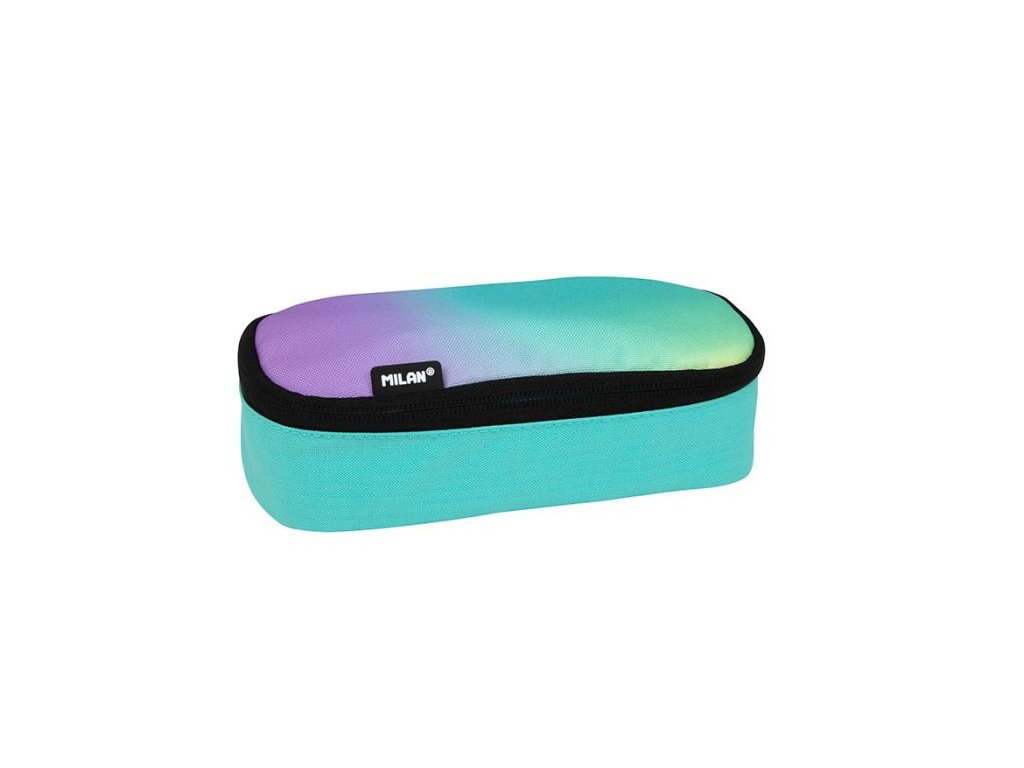 Stylový školní penál s moderním motivem Sunset. Má prostorný oválný tvar, uvnitř síťovanou kapsu a podšívku v černé barvě. Zavírání je na jeden zip, díky čemuž je praktický a snadno ovladatelný. Vyrobený z odolného polyesteru, bez náplně. Doporučeno pro děti od 3. třídy ZŠ. Rozměry 20,5 × 9 × 5,5 cm.