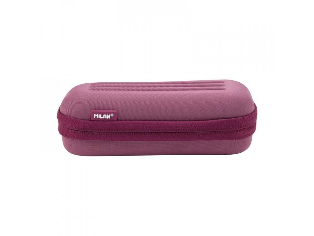 Odolné skořepinové oválné pouzdro z kolekce IGLOO od MILAN, bordové barvy s tyrkysovými doplňky, vybavené vnitřní síťovou kapsou na drobnosti. Pouzdro je vyrobeno z kombinace polyesteru a E.V.A. s polyesterovou vnitřní podšívkou, zapíná se na zip a má rozměry 20 × 9 × 6,7 cm. Ideální pro bezpečné uložení psacích potřeb a drobných školních nebo kancelářských předmětů.