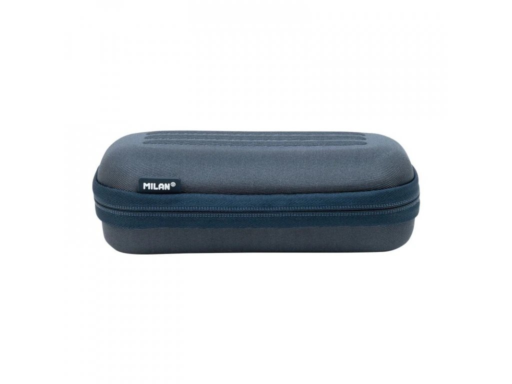 Odolné skořepinové oválné pouzdro z kolekce IGLOO od MILAN, šedé barvy s oranžovými doplňky, vybavené vnitřní síťovou kapsou na drobnosti. Pouzdro je vyrobeno z kombinace polyesteru a E.V.A. s polyesterovou vnitřní podšívkou, zapíná se na zip a má rozměry 20 × 9 × 6,7 cm. Ideální pro bezpečné uložení psacích potřeb a drobných školních nebo kancelářských předmětů.