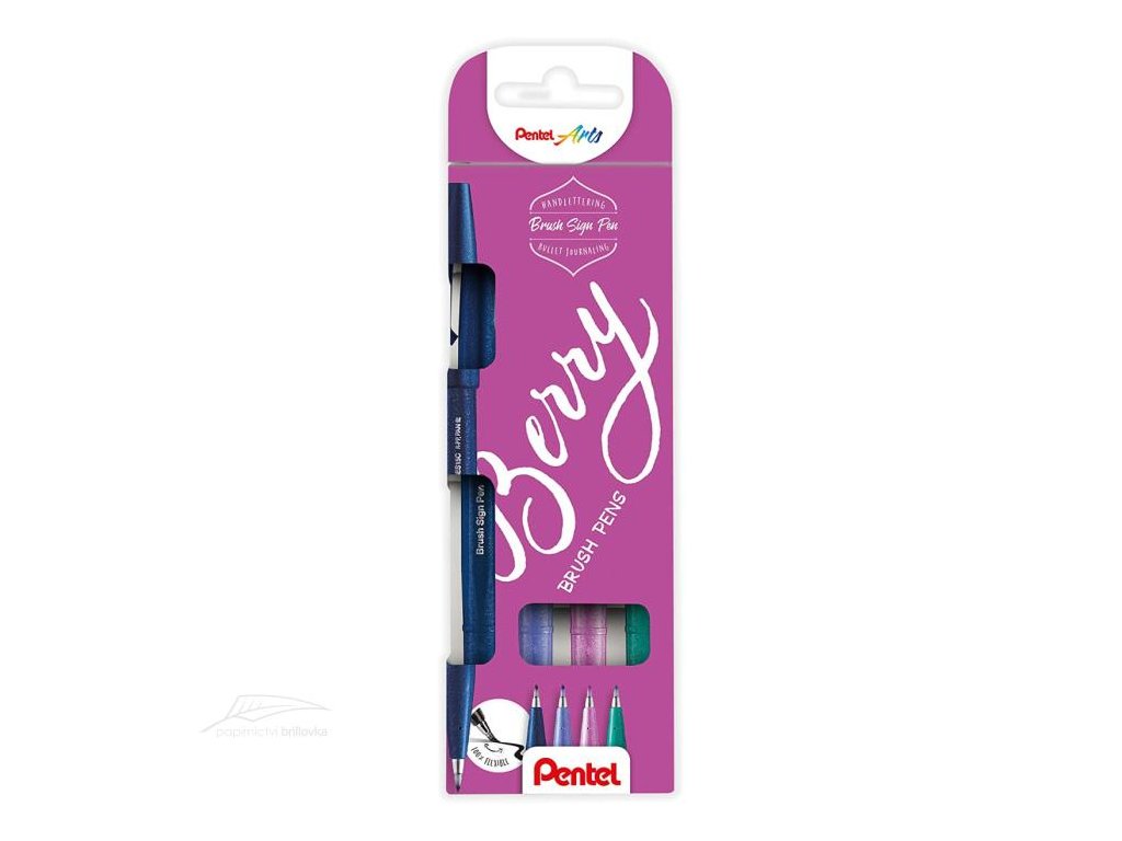 Sada 4 štětečkových popisovačů Pentel Sign Pen se štětečkovým hrotem v kovové objímce (brushpen). Flexibilní vlákna hrotu umožňují proměnnou šířku stopy od extra jemné po středně širokou podle přítlaku. Hrot se vždy vrátí do původního tvaru, ideální pro začátečníky i pokročilé. Popisovače jsou vhodné pro kaligrafii, handlettering, krasopsaní, kresbu, ilustrace a lineart. Inkoust na vodní bázi je rozmývatelný vodou a umožňuje blendování a tvorbu ombré efektů.